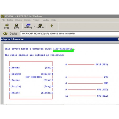 Az adaptert helyezze a programozó ZIF foglalatába. Válassza ki az áramkörbe épített programozandó chipet. Ha az ISP (In-system Programming / Rendszerbe építve programozás) mód támogatva van egy ISP jel jelenik meg a programban. A program megmutatja, hogy melyik szín mit jelöl. A képek között látható ISP programozási instrukciókat tartalmazó kép.